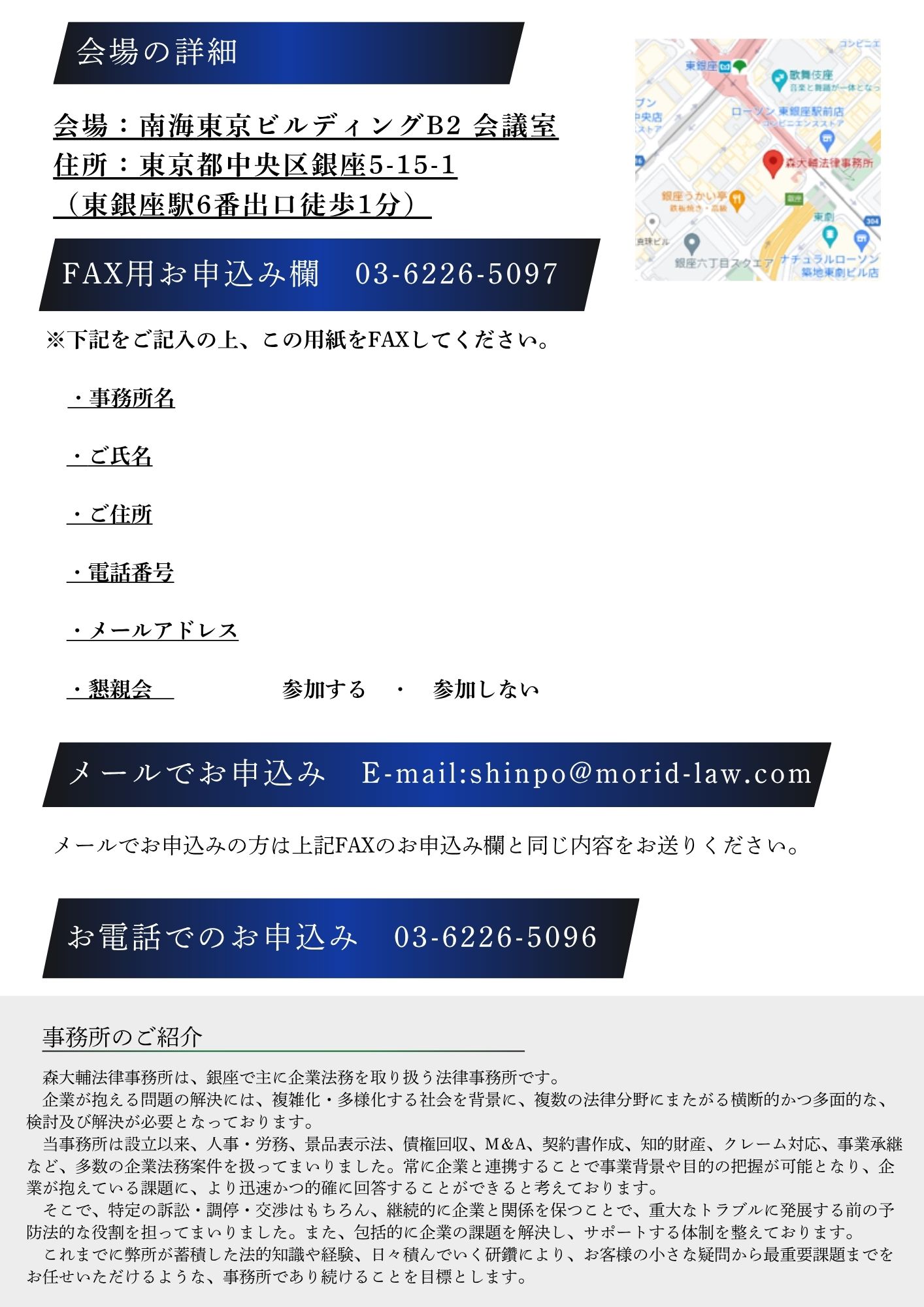 費用:2,000円(顧問先様は無料) (懇親会ご参加の方は別途3,000円頂きます。)